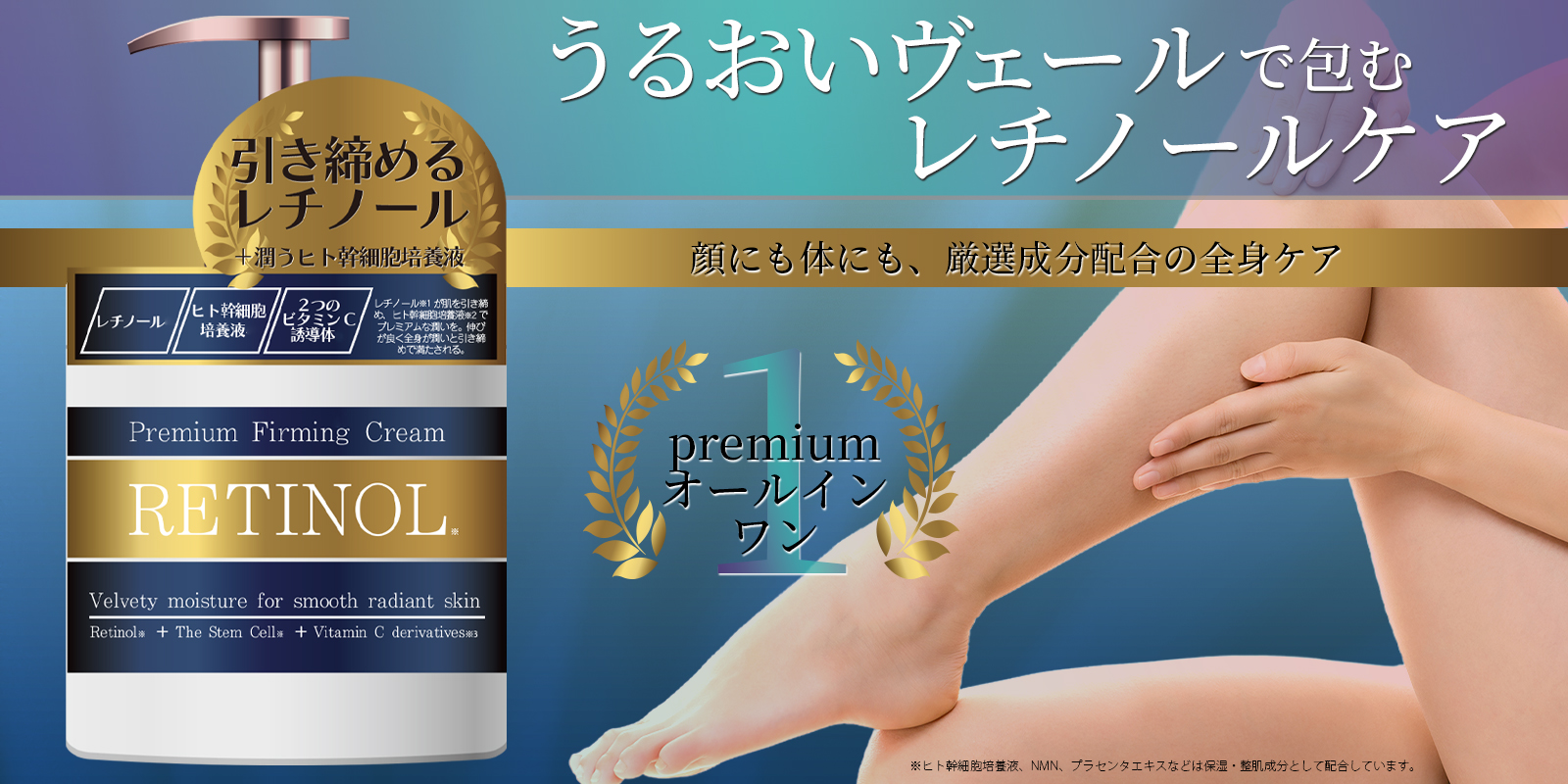- レチノール・エクソソーム・NMNなどの美容成分をバランスよく配合した、プレミアムオールインワンクリーム。